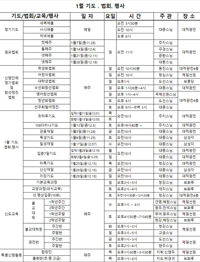 1월 기도법회 행사
