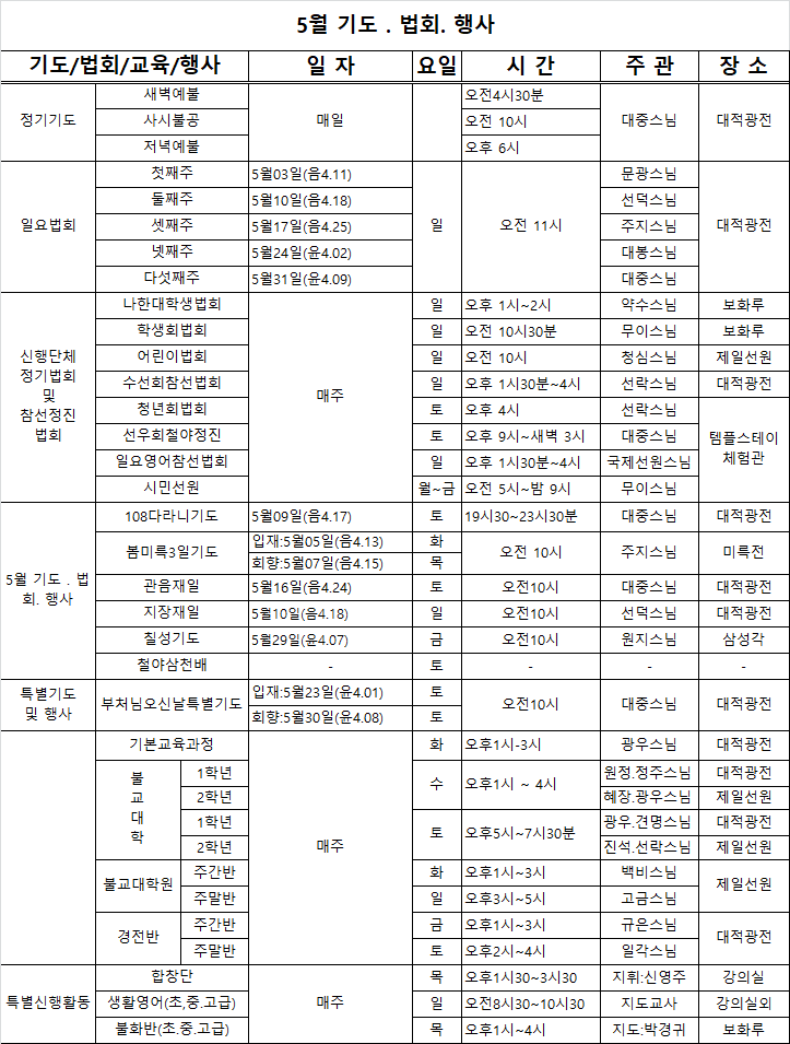 5월 기도.법회행사