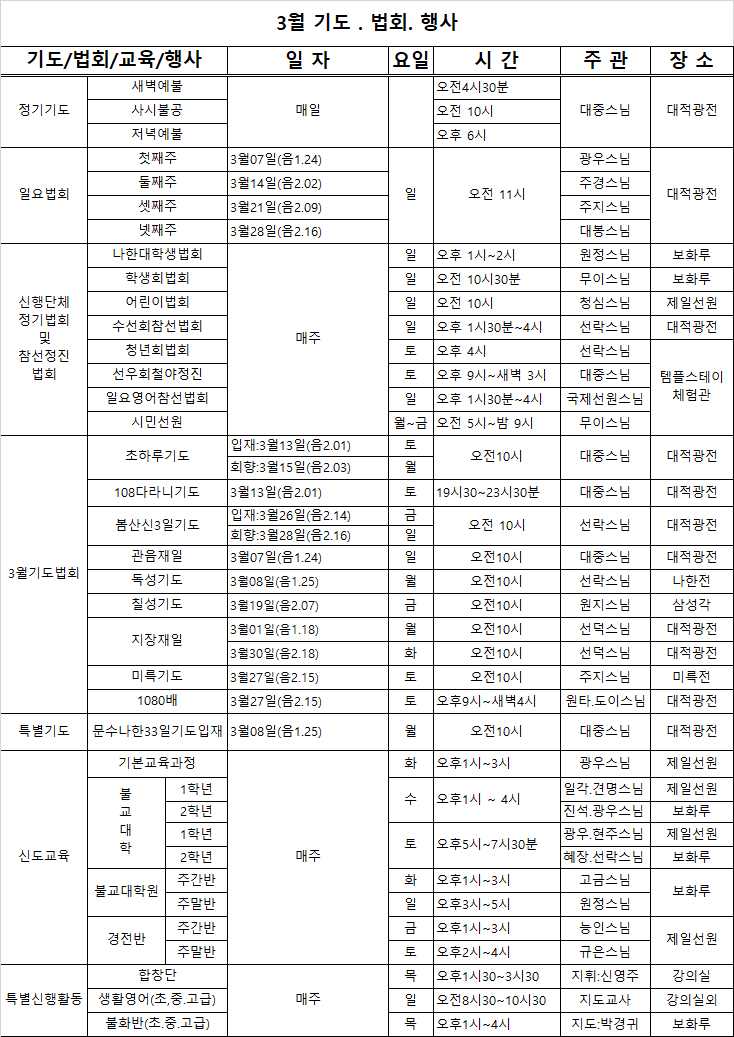 3월 기도.법회행사