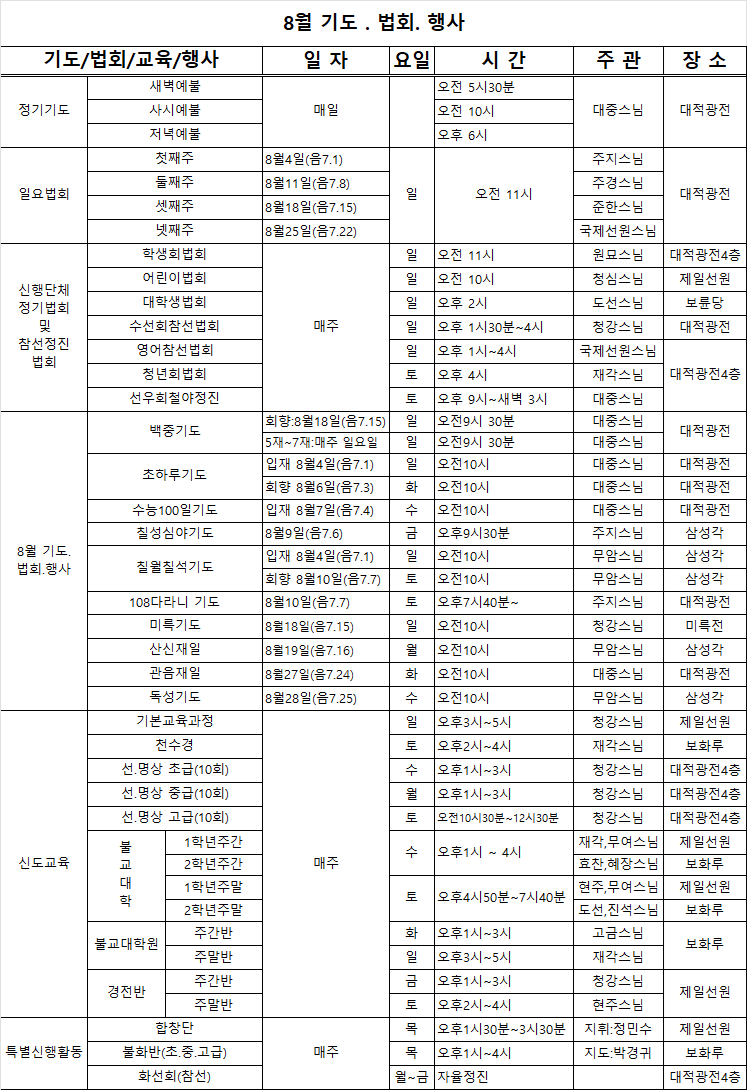 8월 기도법회 행사