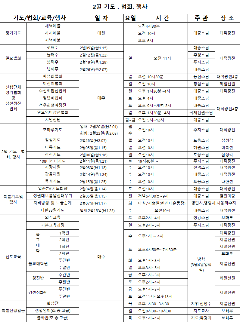 2월 기도법회행사
