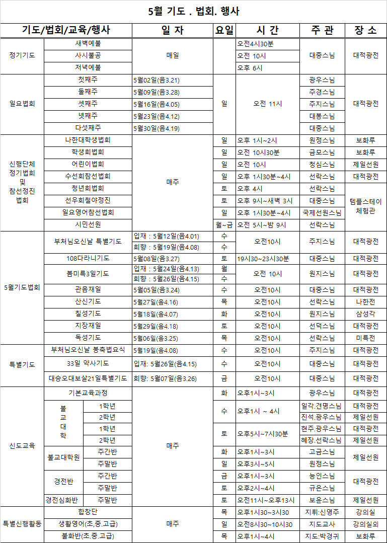 5월 기도.법회.행사