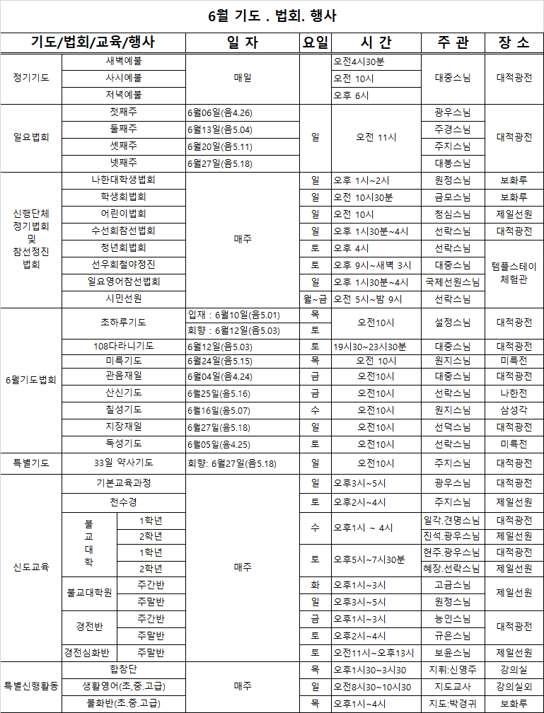 6월 기도.법회.행사