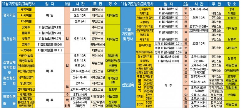 2025년 11월 기도법회행사 일정