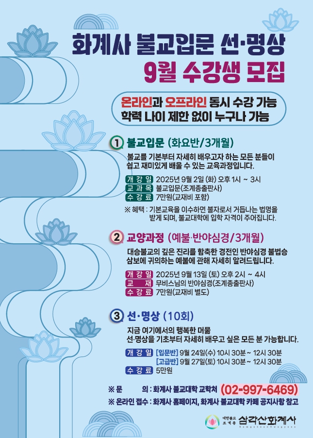 온라인 입금(국민은행 354-25-0008-176, 대한불교조계종 화계사.불교대) 하시기 바랍니다
